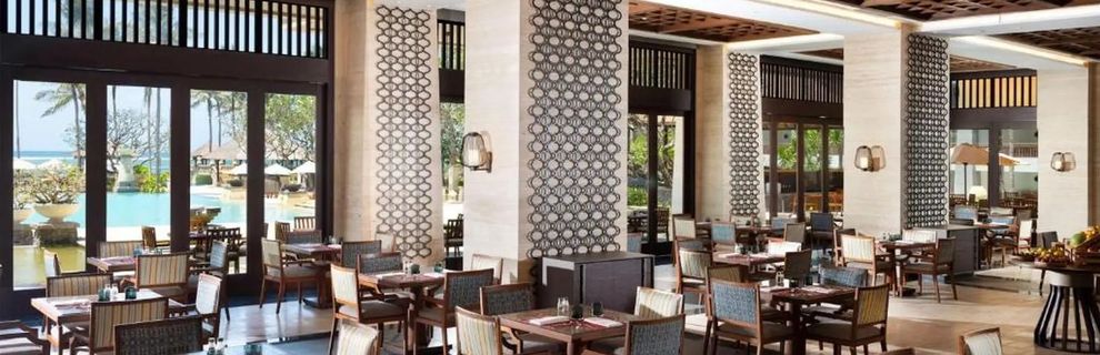 Hotel oferuje wyżywienie w opcji BB (śniadania), HB (2 posiłki), HB (3 posiłki) lub All Inclusive (śniadania, obiady, kolacje, przekąski, słodkości i napoje alkoholowe i bezalkoholowe). Rin - restauracja serwująca dania kuchni japońskiej; Eight Degrees South - restauracja serwująca dania kuchni śródziemnomorskiej; Suku - restauracja serwująca dania kuchni lokalnej i azjatyckiej; East - bar serwujący lekkie przekąski, kawę i napoje alkoholowe; Azure Bar - bar serwujący lekkie przekąski, napoje alkoholowe i bezalkoholowe; Private Dining - możliwość aranżacji kolacji w romantycznej scenerii.