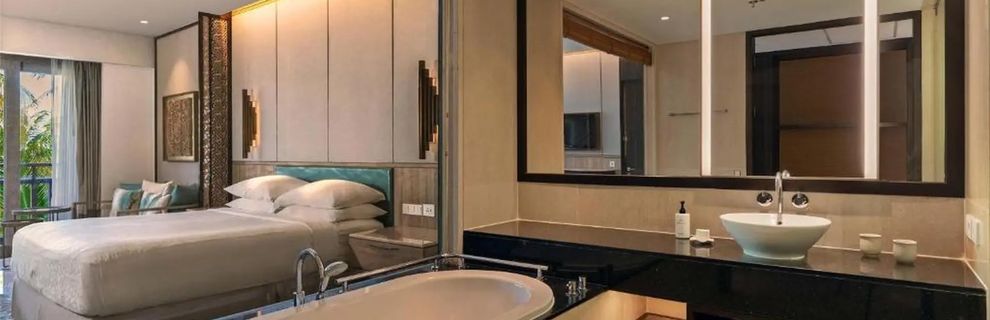 Pokój typu Deluxe (45 m2, sypialnia, widok na ogród, częściowy lub bezpośredni na morze), pokój typu Deluxe Lagoon (45 m2, sypialnia, widok na basen, bezpośredni dostęp do basenu), Deluxe Family (90 m2, 2 sypialnie, 2 łazienki, widok na ogród, basen lub morze), pokoje Resort Suite (90 m2, sypialnia, salon wypoczynkowy z częścią jadalną, widok na morze). Wszystkie wyposażone są w indywidualne klimatyzacje, łazienki (wanna, prysznic, suszarka do włosów), zestaw do kawy herbaty, mini bar, telefon, TV sat, sejf, Wi - Fi (bezpłatne), żelazko i deska do prasowania.