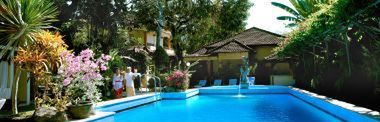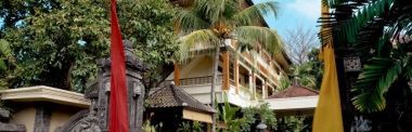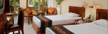 bezpośrednio przy rozległej piaszczystej plaży Sanur znajdującej się w południowo- wschodniej części wyspy Bali. W sąsiedztwie znajdują się sławne atrakcje m.in. Museum Le Mayer, mistyczne świątynie oraz centrum sztuki i rzemieślnictwa. 8 km od lotniska w Denpasar