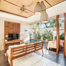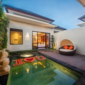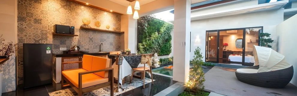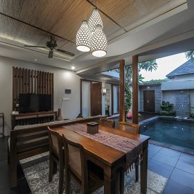 To luksusowy kompleks willowy, który przenosi Gościa w sam środek balijskiego raju, łącząc elegancję, komfort i wszechstronną ofertę udogodnień w jednym z najpiękniejszych zakątków Bali. Wszystkie wille i pokoje wyróżniają się nowoczesnym designem, zapewniając prywatność oraz wygodę - każdy detal został tu stworzony z myślą o Gościu szukającym harmonii, relaksu i prawdziwego odpoczynku. Hotel dysponuje również restauracją i barem serwującymi wykwintne dania kuchni międzynarodowej oraz lokalnej. Jego prestiżowa lokalizacja pozwala łatwo dotrzeć do lotniska, znanych atrakcji południowego Bali, targów oraz lokalnych restauracji.