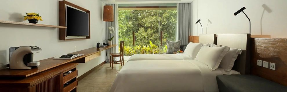 Luksusowy ośrodek to prawdziwa oaza spokoju, położona pośród pól ryżowych i tropikalnych ogrodów nad malowniczą rzeką Petanu, zaledwie kilka minut od artystycznego Ubud. Goście mogą tu zanurzyć się w zieleni, korzystać z dwóch basenów infinity z widokiem na dolinę i oddychać niesamowitą balijską atmosferą. To miejsce stworzone do pełnego relaksu z wygodnymi apartamentami i willami, otoczonymi naturą, przestronnym lobby, kilkoma restauracjami i kawiarniami, w których można delektować się lokalną i międzynarodową kuchnią. Przez cały pobyt Goście mają dostęp do bezpłatnego Wi-Fi, a za dodatkową opłatą możliwe jest korzystanie z pralni, spa, masaży i usług sportowych.