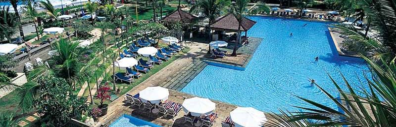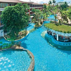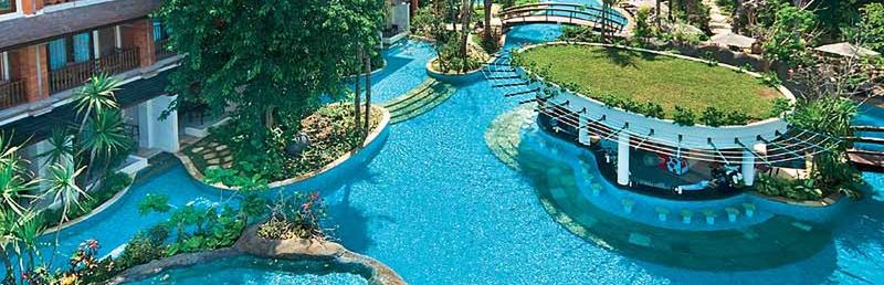 Wyposażenie: wspaniały resort w stylu balijskim, składający się z 4-piętrowego budynku głównego oraz licznych dwupiętrowych domków. 409 pokoi, bary, uliczka handlowa, liczne restauracje, ?The Deli? ze sklepikiem, coffe ? lounge. 2 baseny, bar typu swim-up. Oddzielny brodzik dla dzieci oraz taras słoneczny. Leżaki, parasole oraz ręczniki kąpielowe przy basenie bezpłatnie. WLAN w całym obiekcie bez opłaty. Uwaga! Minimalny wiek w pokojach przy lagunie ? 6 lat.