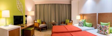 Deluxe 2-os. (możliwość 1 lub 2 dostawek), ok. 30 m2, elegancki i zadbany, indywidualnie sterowana klimatyzacja, łazienka (wanna lub prysznic, WC; suszarka), telewizja satelitarna, telefon, zestaw do kawy/herbaty, minibar (codziennie uzupełniany w napoje bezalkoholowe oraz piwo), sejf, internet bezprzewodowy (płatny); bezpłatne łóżeczko dla dziecka do 2 lat na zamówienie przed przyjazdem; balkon (stolik i krzesełka), widok na ogród, basen lub okolicę; widok na morze za dopłatą.