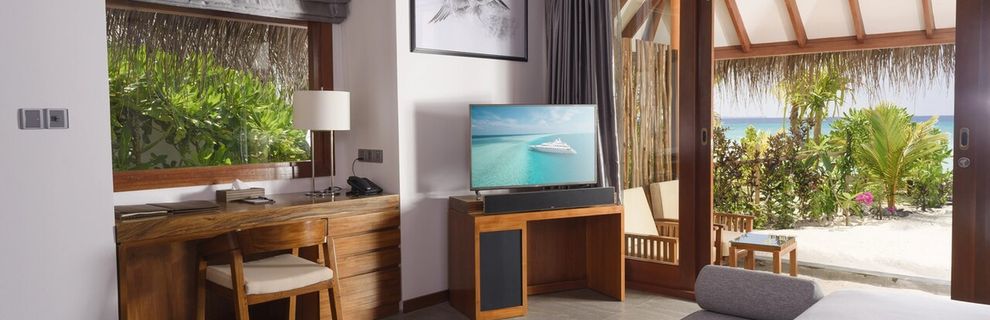 Hotel otacza szeroka, piaszczysta plaża z dostępem bezpośrednio z willi i restauracji, idealna zarówno do błogiego relaksu, jak i aktywnej zabawy w lagunie oraz podziwiania rafy koralowej.