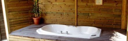 Wille typu sangu jacuzzi wyposażone identycznie jak wille na plaży. Dodatkowo patio z jacuzzi.