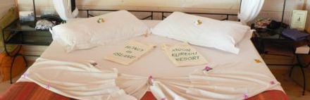 Wybudowane w 2002 roku wille na plaży z prysznicem i WC, łóżkiem z baldachimem, nowoczesnymi meblami z drewna i żeliwa, klimatyzacją, wentylatorem, sejfem, telefonem, suszarką do włosów, odtwarzaczem CD, czajnikiem i prywatnym tarasem do opalania. Łazienki w bungalowach obu kategorii znajdują się na świeżym powietrzu, nie mają dachu i są otoczone murem.