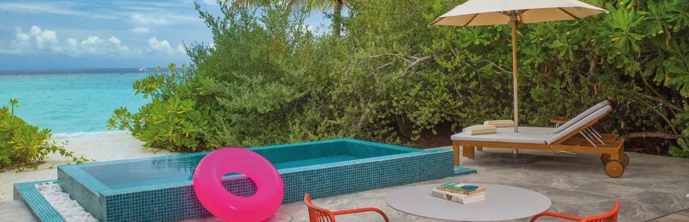 Znajduje się na Atollu Raa, bezpośrednio przy piaszczystej plaży z łagodnym zejściem do morza.