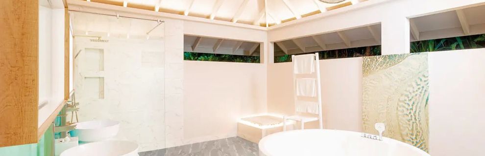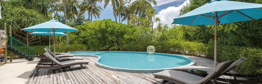 Hotel dysponuje 3 basenami, w tym jednym typu infinity. Każda z 115 willi posiada również prywatny mały basen.