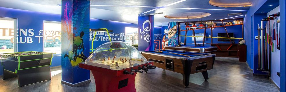 Recepcja, lobby, windy (tylko w części Resort), 4 restauracja (główna bufetowa i 3 a' la carte), 5 barów (w tym snack bary), dyskoteka, tarasy słoneczne z leżakami i parasolami w ogrodzie, 4 strefy basenowe (w tym basen dla dzieci ze statkiem pirackim i zjeżdżalniami i basen tylko dla dorosłych, w basenach słodka woda), mini i maxi klub, opiekunka dla dziecka (płatna), pralnia (samoobsługowa, płatna), sale konferencyjne, mały pasaż handlowy, wymiana walut, punkt medyczny, parking.