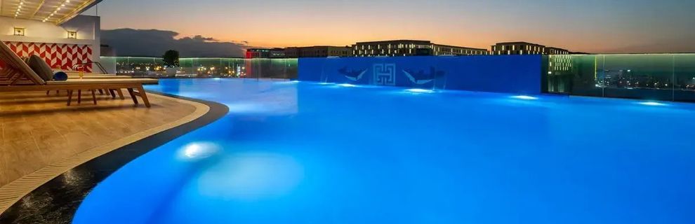 Na dachu znajduje się basen z panoramicznym widokiem na miasto, doskonały na relaks w słońcu.