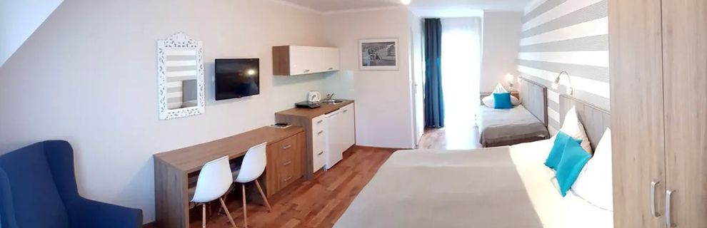 Nowoczesny obiekt w cichej części Niechorza, idealny dla Gościa szukającego wypoczynku blisko szerokiej, piaszczystej plaży i latarni morskiej, który doceni kameralną strefę wellness z basenem krytym oraz zadbany ogród z miejscem do relaksu, a także wygodę aneksów kuchennych w wybranych pokojach, restaurację na miejscu i rodzinne udogodnienia. Pobyt uprzyjemniają Wi-Fi, sprzęt plażowy w pokojach oraz możliwość korzystania z jacuzzi i multisauny, a po dniu nad morzem Gość z przyjemnością wróci do przytulnych wnętrz.
