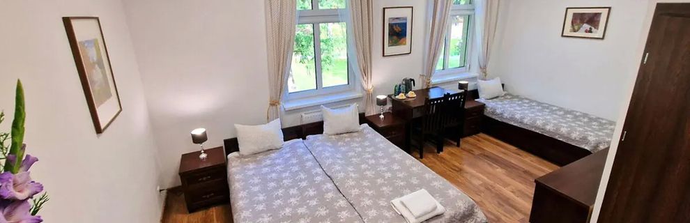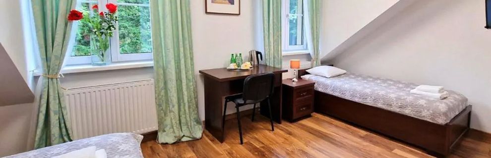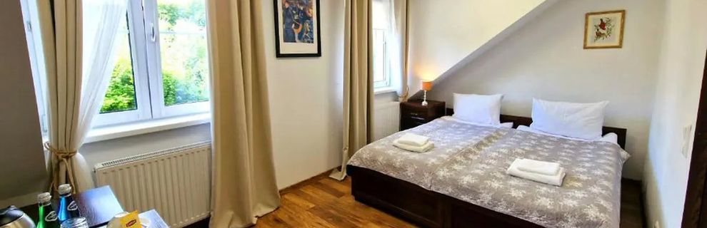 To kameralne, przyjazne miejsce położone tuż przy Parku Zdrojowym w Jedlinie-Zdroju, wśród zieleni uzdrowiskowej miejscowości u podnóża Sudetów. Obiekt został stworzony z myślą o Gościu, który szuka spokojnej bazy do relaksu, wyciszenia i aktywnego odkrywania okolicy pełnej atrakcji przyrodniczych oraz zabytków regionu. Każdego ranka czekają śniadania w formie bufetu, a dodatkowym atutem jest piękny widok na park i fontannę znajdujące się tuż obok. Dla Gościa, który lubi wypoczynek na świeżym powietrzu, lokalizacja pensjonatu w sąsiedztwie licznych szlaków i atrakcji Parku Zdrojowego stanowi doskonałą inspirację do aktywnego urlopu o każdej porze roku.