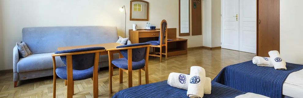 Wyjątkowy hotel położony w zabytkowej kamienicy w samym sercu Krakowa, oferujący Gościom komfortowe noclegi w przyjaznej i domowej atmosferze. To miejsce, w którym codzienność łączy się z historią miasta, a dogodna lokalizacja sprawia, że zarówno pasjonaci zwiedzania, jak i osoby podróżujące służbowo znajdą tu wszystko, co niezbędne do udanego pobytu. Obiekt oferuje aż 38 pokoi, a wszystkie piętra dostępne są dzięki wygodnej windzie. Dodatkowo do dyspozycji Gości jest sala telewizyjna, restauracja oraz ogród - idealny na chwilę wytchnienia po dniu pełnym wrażeń.