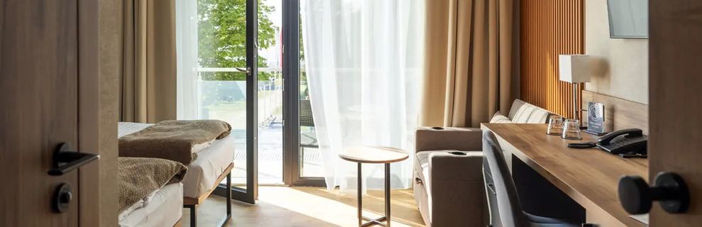 To wyjątkowy hotel, który stanowi spełnienie marzeń każdej osoby kochającej żeglarstwo i aktywny wypoczynek. Położony nad największym jeziorem województwa lubuskiego, zapewnia nie tylko wysoki standard usług, ale także pozwala Gościom cieszyć się urokami natury i sprzyja sportom wodnym. Unikalna lokalizacja bezpośrednio nad Jeziorem Sławskim umożliwia żeglowanie, kajakowanie oraz relaks na brzegu, a klimatyczne wnętrza pokoju z dekoracjami nawiązującymi do żeglarstwa tworzą niezapomnianą atmosferę.