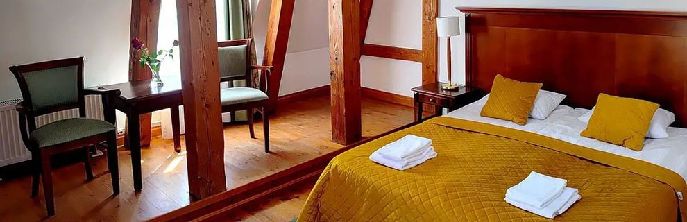To wyjątkowy, 3-gwiazdkowy hotel, który przenosi Gościa w świat XIX-wiecznej rezydencji otoczonej rozległym, zadbanym parkiem. To miejsce, gdzie historia spotyka się z nowoczesnym komfortem - Gość może wypocząć w stylowych pokojach z widokiem na park, skorzystać z doskonałej strefy spa z krytym basenem z hydromasażami, sauną, jacuzzi i siłownią, a także spróbować regionalnej kuchni w hotelowej restauracji. Rodziny docenią bogate udogodnienia dla najmłodszych - salę zabaw, pokój gier z konsolami oraz plac zabaw. Wytchnienie czeka w ogrodzie, a szeroka oferta masaży i zabiegów odnowy biologicznej daje szansę na pełną regenerację.