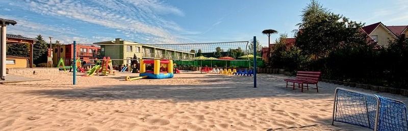 Na dwóch hektarach ogrodzonej i strzeżonej powierzchni rekreacyjnej wśród bujnej zieleni znajdują się bezpieczny plac zabaw dla dzieci, kamienny kompleks rekreacyjny z oczkiem wodnym i kaskadą, kort tenisowy z nawierzchnią syntetyczną, boiska do siatkówki, siatkówki plażowej, koszykówki, ogródek grillowy oraz miejsca do parkowania samochodów.