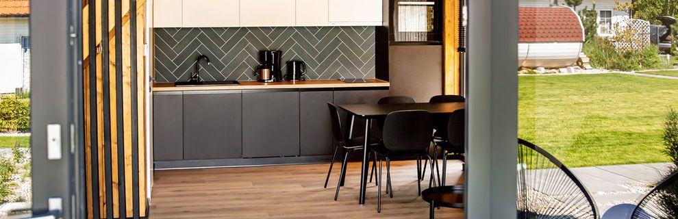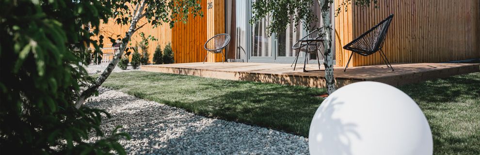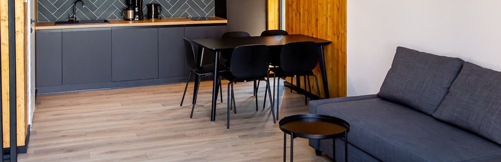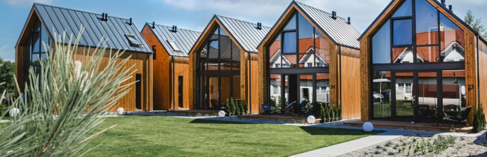 Ośrodek posiada domki i apartamenty przygotowane na pobyt do 6 osób. Każdy z domów i apartamentów posiada aneks kuchenny i łazienkę i składa się z dwóch kondygnacji. Parter stanowi przestrzeń dzienna oraz łazienka - duży salon z zestawem wypoczynkowym i jadalnią, połączony z funkcjonalną, w pełni wyposażoną kuchnią. Na poddaszu mieszczą się dwie wygodne sypialnie. Wszystkie wnętrza charakteryzują się nowoczesnym, ale przytulnym wystrojem. Zarówno pokoje, jak i domki posiadają własne tarasy i ogródki - cenione podczas błogiego rodzinnego wypoczynku. Goście mogą korzystać z bezprzewodowego internetu.