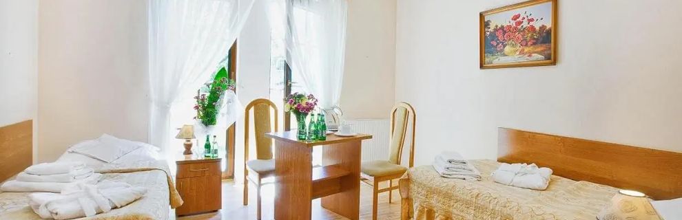 Pełne uroku miejsce zaprasza Gości w sam środek zabytkowego Parku Zdrojowego, gdzie historia łączy się z nowoczesnością i spokojem uzdrowiskowej atmosfery. Bliskość pijalni wód mineralnych, elegancki wystrój wnętrz, szeroka oferta relaksu i zabiegów sprawiają, że pobyt tu to czysta przyjemność dla ciała i ducha. Wiele udogodnień, takich jak basen, jacuzzi, siłownia czy korzystanie z Wi-Fi dostępnych jest bez dodatkowych kosztów. Masaże oraz wybrane zabiegi są oferowane za dopłatą.