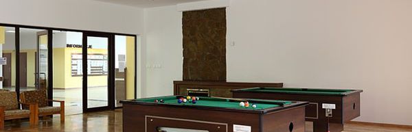 Na terenie ośrodka znajdują się 3 budynki mieszkalne, budynek główny z recepcją, holem, jadalnią, kawiarnią, salą bilardową, kawiarenką internetową, oraz budynek rekreacyjny, gdzie znajdują się sala kinowa, sala tenisa stołowego i siłownia. Na terenie ośrodka znajdują się Wakacyjny Klub Malucha, w którym prowadzone są zajęcia animacyjne dla najmłodszych Gości, kręgielnia do zabawy, boiska do siatkówki i badmintona, kort tenisowy, plac zabaw, oraz miejsce na ognisko.