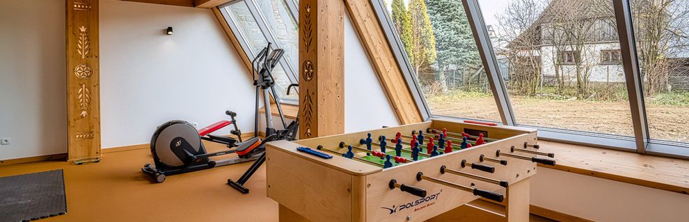W obiekcie znajduje się sala fitness z dużymi, skośnymi oknami, drewnianymi elementami wystroju oraz stołem do gry w piłkarzyki. Goście przybywający zimą mogą korzystać z narciarni wyposażonej w wygodne szafki zamykane na klucz. Dla dzieci przygotowano salę zabaw z kolorowymi ścianami, zabawkami i mebelkami w ich rozmiarze.