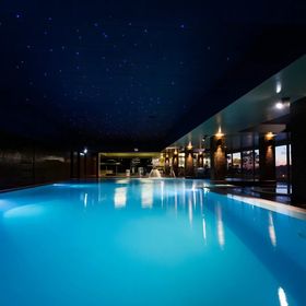 Kryty podgrzewany basen z nieregularnym kształtem, jacuzzi i sauna. Ręczniki dostępne za depozytem.