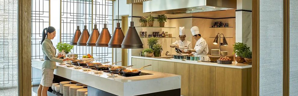 Hotel oferuje wyżywienie w opcji BB (śniadania), HB (2 posiłki) i FB (3 posiłki). The Line - restauracja serwująca dania kuchni międzynarodowej, Nadaman - kuchnia japońska, Shang Palace - kuchnia kantońska, The Waterfall - restauracja serwująca dania kuchni włoskiej, Rose Weranda - kawiarnia serwująca desery i herbaty najwyższej jakości. Bar Lobby Court i BLU Bar serwują napoje alkoholowe i bezalkoholowe.