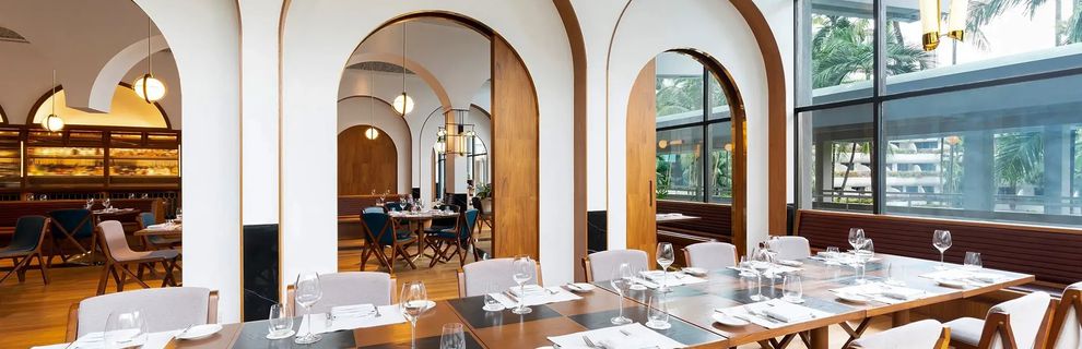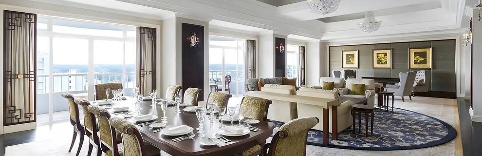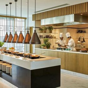 Hotel oferuje wyżywienie w opcji BB (śniadania), HB (2 posiłki) i FB (3 posiłki). The Line - restauracja serwująca dania kuchni międzynarodowej, Nadaman - kuchnia japońska, Shang Palace - kuchnia kantońska, The Waterfall - restauracja serwująca dania kuchni włoskiej, Rose Weranda - kawiarnia serwująca desery i herbaty najwyższej jakości. Bar Lobby Court i BLU Bar serwują napoje alkoholowe i bezalkoholowe.