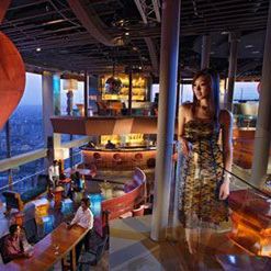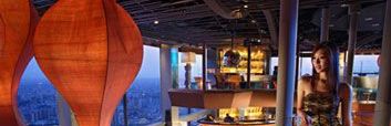 Bary i restauracje usytuowane na poziomie 69.-70. piętra. Wizyta w restauracji hotelowej stanowi jedną z atrakcji w mieście. Goście mogą korzystać z obiektów należących do obu hoteli (Raffles the Plaza oraz Swissotel the Stamford).