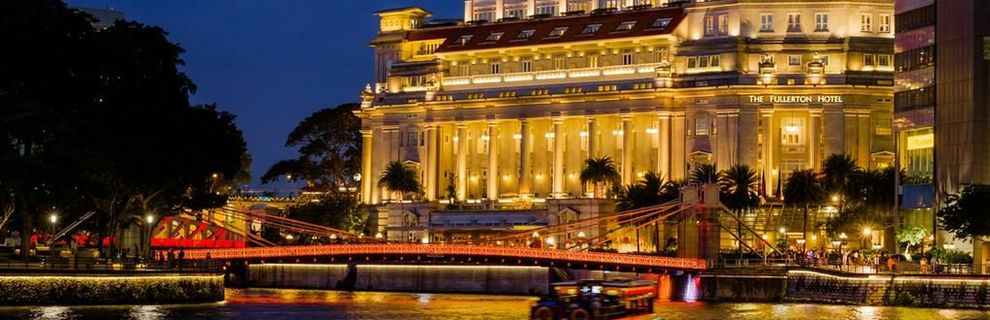 Reprezentacyjny hotel Fullerton znajduje się w finansowym centrum Singapuru, w prestiżowej dzielnicy pełnej galerii sztuki, ekskluzywnych butików i najlepszych restauracji. Blisko hotelu znajdują się przystanki autobusów miejskich i szybkiej kolejki podziemnej (MRT). Luksusowy hotel mieści się w zabytkowym, klasycystycznym budynku w zbudowanym w 1928 roku, który został przekształcony w luksusowy hotel w 2001 roku. Niezwykle atrakcyjnie zlokalizowany hotel przylega do malowniczego brzegu rzeki Singapore. Ekskluzywny hotel stanowi udane połączenie bogatego dziedzictwa kolonialnej przeszłości ze współczesnym stylem i azjatycką nowoczesnością. Hotel oferuje światowej klasy standard zakwaterowania oraz bogate doświadczenie w obsłudze firm i osób podróżujących w interesach.