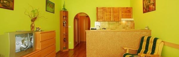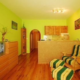 w STUDIACH 2-osobowych z możliwością dostawki (rozkładany wypoczynek) - jedno pomieszczenie, APARTAMENTACH 2-osobowych z możliwością do 3 dostawek (1-2 rozkładane wypoczynki) - 2 pomieszczenia, APARTAMENTACH 2, 3, 4, 5-osobowych z możliwością 2 dostawek (rozkładany wypoczynek) - 3 pomieszczenia, wszystkie z łazienkami, TV Sat, aneks kuchenny, internet (kabel - opłata 2 Eur/ dzień). Niektóre apartamenty przystosowane są dla osób na wózkach inwalidzkich.