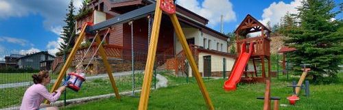 jadalnia, miejsce na ognisko, parking strzeżony systemem kamerowym, przechowalnia sprzętu narciarskiego, salki szkoleniowe, kącik dziecięcy, duże pomieszczenie z kominkiem i tarasem.