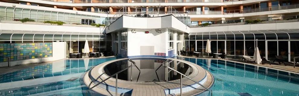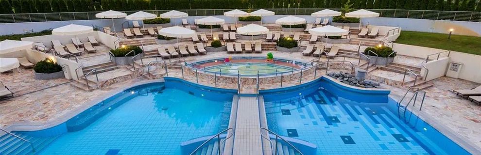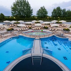 Goście hotelu mogą korzystać z 4 nowoczesnych basenów wewnętrznych i 2 basenów zewnętrznych, z których jeden wypełniony jest czarną wodą termalną.