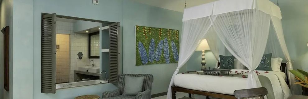 W drugiej linii brzegowej, ok. 100m od plaży, w zielonym otoczeniu, 3km od centrum, ok. 109km od lotniska, 59km od słynnego miasta Galle (na liscie UNESCO). Między ogrodem hotelowym a plażą biegnie linia kolejowa.