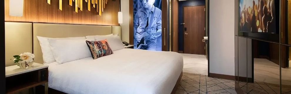 Zanurz się w żywiołowym klimacie Nowego Jorku w Hard Rock Hotel New York. Hotel, zaprojektowany przez Jeffrey Beers International, zyskał uznanie dzięki unikalnemu designowi i legendarnym pamiątkom, które oddają hołd nowojorskiej scenie muzycznej. Od restauracji i baru, gdzie żywe występy uchwycają duszę miasta, po zapierające dech w piersiach widoki oraz mistrzowsko skomponowane koktajle w RT60 Rooftop Bar & Lounge - każda chwila to niezapomniane przeżycie. Odkryj niezrównane przestrzenie eventowe, delektuj się muzycznymi udogodnieniami, i odpocznij w jednym z naszych 446 pięknie zaprojektowanych pokoi i apartamentów z oknami od podłogi do sufitu, które ukazują energię miasta. Zaledwie kilka kroków od ikon, takich jak Broadway i Rockefeller Center, hotel zaprasza Cię do zanurzenia się w tętniącym życiem centrum Midtown Manhattan i odkrycia niezrównanego uroku Hard Rock Hotel New York.