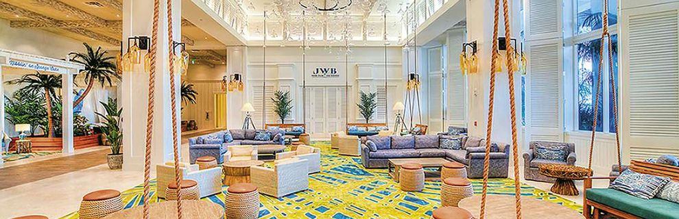 24-godz. recepcja, przestronne i ze smakiem urządzone lobby,windy,usługi concierge, przechowalnia bagażu,sklep z pamiątkami, mini market, Goście hotelu mogą korzystać z kilku restauracji: głównej Marraritaville, JWB Prime Steak and Seafood, specjalizującej się w typowo amerykańskich steakach oraz owocach morza, restauracji z tarasem Landshark Bar & Grill, , baru przy plaży 5 o'clock Somewhere z muzyką na żywo, baru przy plaży Lone Palm, charakterystycznego baru stworzonego w przyczepie AirStream - Floridays oraz kawiarni z szerokim wyborem przekąsek. Na terenie hotelu znajdują się dwa lagunowe baseny zewnętrzne otoczone tarasem słonecznym, ładnie wkomponowane w egzotyczny ogród. Goście mogą korzystać ze zjeżdżalni oraz toru do surfowania (FlowRider). Na dachu znajduje się strefa dla dorosłych - basen zewnętrzny oraz bar License to Chill Bar. Leżaki, parasole i ręczniki dostępne bezpłatnie.