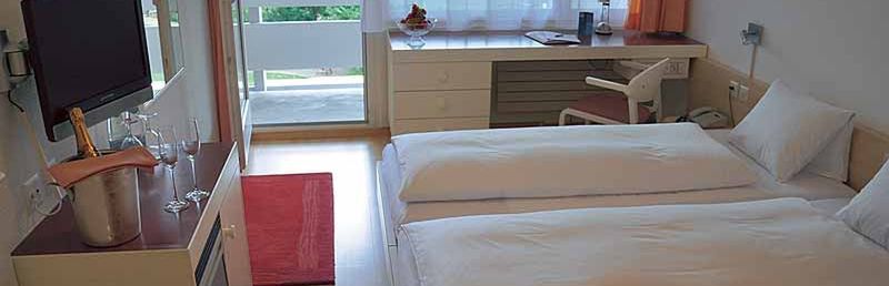 Pokoje: rustykalne, wanna lub prysznic, WC, suszarka, płaszcze kąpielowe, telefon, TV sat, radio mini bar, sejf, kącik do siedzenia. WLAN (za opłatą). A1A: pokój 1-os. A1B: pokój 1-os., typu superior. A1C: pokój 1-os., wariant ekonomiczny (bardzo mały). A2A: pokój 2-os. A2B: pokój 2-os. superior. A2C: pokój 2-os., wariant ekonomiczny (bardzo mały).