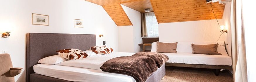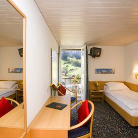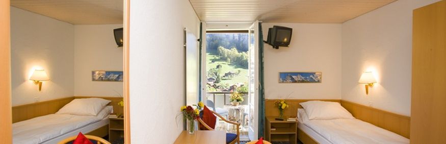 (ok. 12-23 m2), hotel dysponuje 24 pokojami - jednoosobowe, dwuosobowe, trzyosobowe, czteroosobowe. Łazienka z WC, suszarka do włosów; TV-sat. Część pokoi posiada balkon.