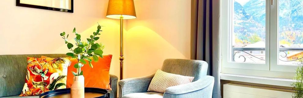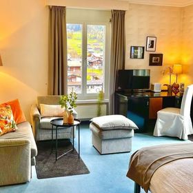 Hotel położony w spokojnej okolicy, w parku, w samym centrum Meiringen.