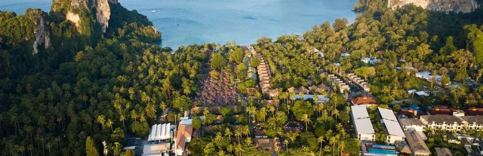 W malowniczej, kameralnej miejscowości Railay, na przepięknym, skalistym wybrzeżu Krabi - miejscu docenianym przez miłośników wspinaczki oraz entuzjastów nurkowania. Obiekt otoczony jest bujnym, kwiatowym ogrodem, oferuje 141 komfortowych pokoi i bungalowów, w tym wyjątkowe wille z prywatnym basenem i jacuzzi. Goście mają do dyspozycji 2 baseny z leżakami i parasolami, restaurację a la carte z widokiem na morze, bar przy basenie, centrum masażu tajskiego oraz centrum spa. Kameralny charakter oraz różnorodność zakwaterowania sprawiają, że hotel jest doskonałym wyborem zarówno dla par pragnących wypoczynku, jak i rodzin z dziećmi. Całość dopełniają piękne widoki na zatokę, tropikalne ogrody i szeroki wachlarz atrakcji wodnych w okolicy.
