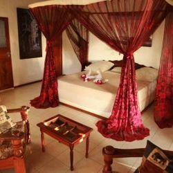 Standard Bungalow dla 2 osób wszystkie bungalowy wyposażone są w duży salon z łóżkiem, moskitiere, ponadto klimatyzacja, wentylator, przestronna łazienka z WC i suszarką do włosów.