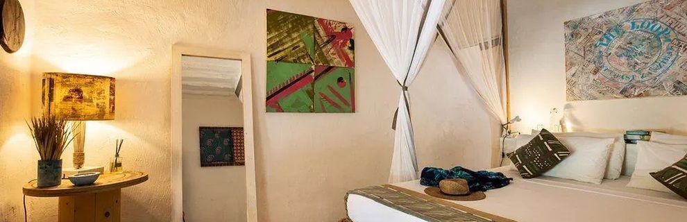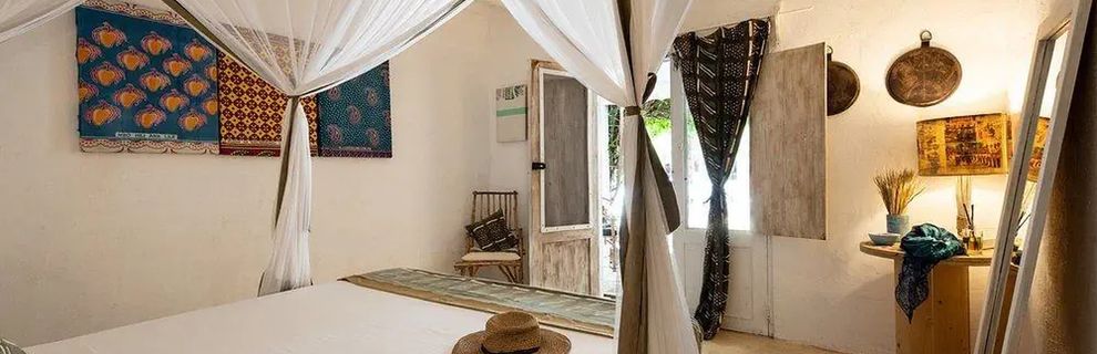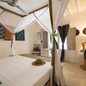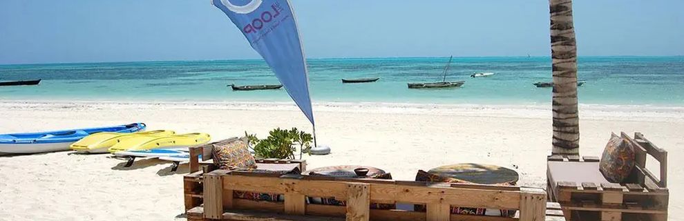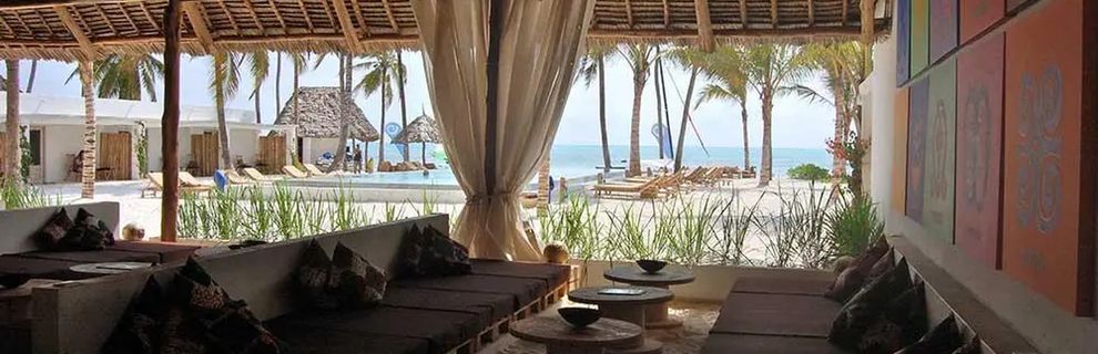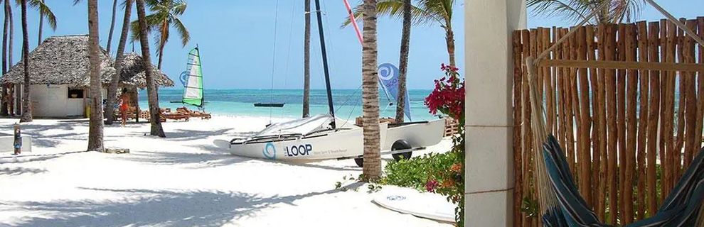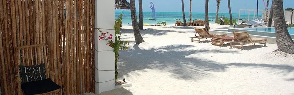 Południowo-wschodnie wybrzeże, przy piaszczystej plaży, w miejscowości Jambiani, ok. 55km od lotniska (ok. 80minut jazdy).