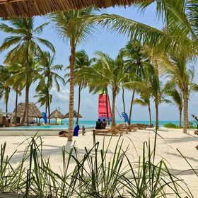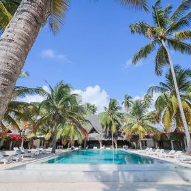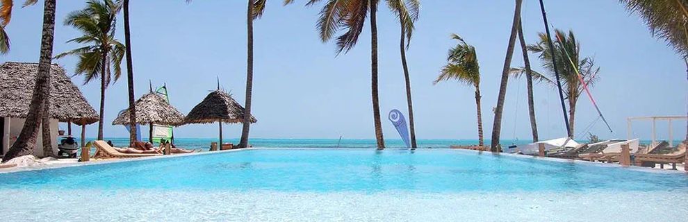 Odkryty basen z widokiem na morze otocozny palmami, leżaki przy basenie. Za dodatkwoą opłatą sporty wodne (kite surfing, kajaki, nurkowanie).
