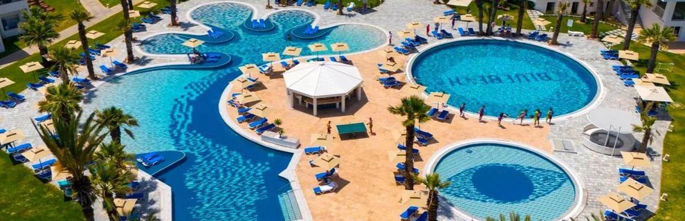 Ten hotel zaprasza Gości na beztroskie wakacje pełne słońca, relaksu i rodzinnej rozrywki tuż przy piaszczystej plaży. Położony w dzielnicy Skanes w pobliżu Monastiru, obiekt zachwyca nowoczesnymi wnętrzami, otwartą przestrzenią i szeroką gamą udogodnień dostosowanych zarówno do rodzin z dziećmi, jak i par czy osób aktywnych. Do dyspozycji Gościa są komfortowe pokoje, 3 zewnętrzne baseny, imponujący aquapark oraz odkryty i kryty basen. Restauracje, bary i urozmaicone animacje zapewniają moc kulinarnych i rozrywkowych doznań, a dla dzieci przygotowano miniklub, animacje, brodzik i plac zabaw. Gość może zadbać o formę w centrum fitness i delektować się lokalnymi smakami. Wykwalifikowany personel, znakomite położenie i rodzinny klimat sprawiają, że hotel wyróżnia się na mapie tunezyjskich kurortów.