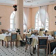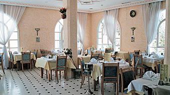 Dwa posiłki dziennie, śniadania i obiadokolacje w formie bufetu. W przypadku małej liczby gości w hotelu posiłki serwowane do stolika.