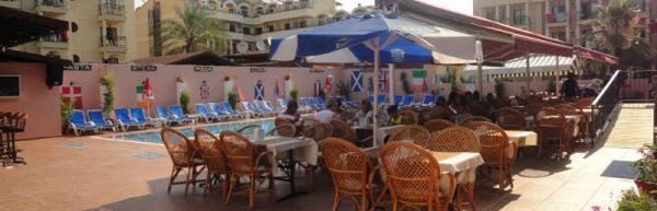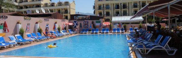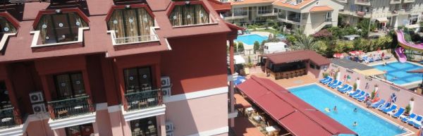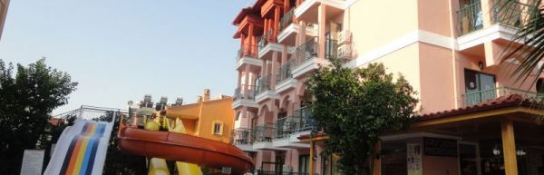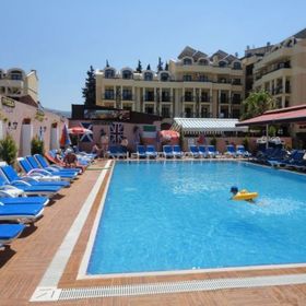 Marmaris, ok 1,5 km od centrum. Odległość od międzynarodowego portu lotniczego w Dalamanie wynosi ok. 90 km. Plaża Obiekt zlokalizowany jest ok. 1,5 km od piaszczysto-żwirowej plaży (wydzielona część hotelowa). Zejście do morza łagodne, żwirowe, miejscami kamieniste - zalecane obuwie ochronne). Na plaży znajduje się bar (nie należący do hotelu) serwujący napoje i przekąski za dodatkową opłatą - przy zakupie napoi goście mogą korzystać z leżaków, materacy oraz parasoli bez dodatkowych opłat. Hotel nie posiada serwisu ręczników plażowych.