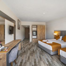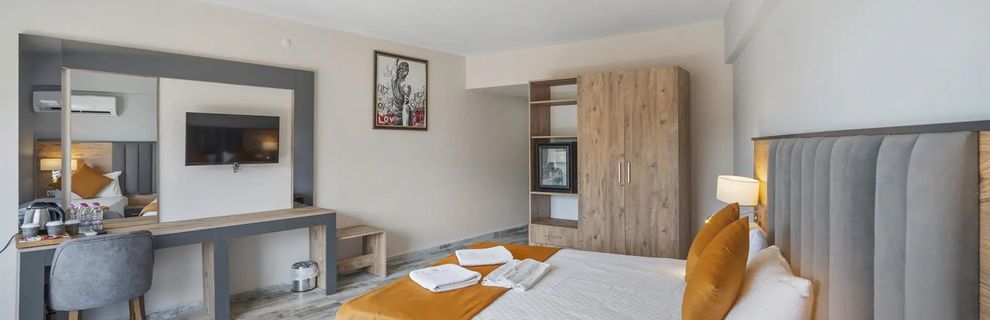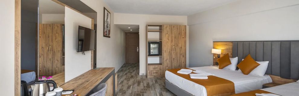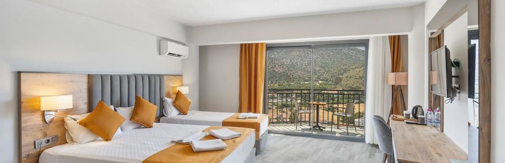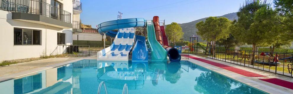 Kameralny hotel, posiada 149 pokoi, do dyspozycji gości; restauracja główna, restauracja z przekąskami, cukiernia, 2 bary (lobby bar, bar przy basenie), lobby z recepcją, basen ze słoną wodą, basen dla dzieci, zjeżdżalnie wodne. Niniejszy opis hotelu obowiązuje w sezonie letnim 2025 (przybliżony czas trwania 27.04.-15.10.2025 r.).