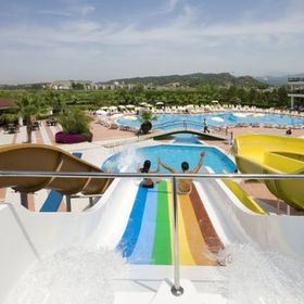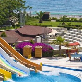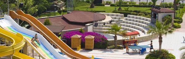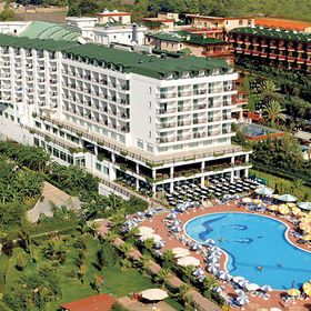 Tygodniowy pobyt z biura Itaka. Hotel 5*, powiniem mieć max.4*. Baseny, zjeżdżalnie, ogród i plaża, położony przy(kamienistej) plaży. Wyżywienie smaczne, opcja all inclusive z 3 posiłkami, przekąskami, owocami i alkoholem. Wśród gości większość Turków (też \"gastarbeiterów\" z Niemiec) i Rosjan - Polacy w mniejszości. Hotel powinien poprawić sprzątanie i naprawy (3 dni od przyjazdu nie wymienili połamanej deski sedesowej w łazience). Panie sprzątające przykładają się do wykonania obowiązków po otrzymaniu bakszyszu (za \"łabądki z ręczników\"). Kids Club - animatorzy dla dzieci niepunktualni i niesolidni - zaprosili dzieci na malowanie T-shirtów, ale zabawa się nie odbyła z braku tychże ;-( Program wieczorny BAAARDZO amatorski ;-(
