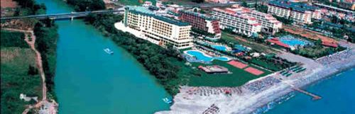 Spędzilismy w hotelu 2 tyg. Ogólnie jesteśmy zadowoleni z pobytu. W hotelu większość gości to Rosjanie, ale można to przeżyć. Pokoje duże i czyste. Jedzenie smaczne, dobre desery i sałatki.Plaża kamienista i często duże fale, no ale to otwarte morze a nie zatoka. Dobra komunikacja do Alanii i Side. Co kilka minut pod hotel podjeżdża dolmusz.Hotel może być dobrą bazą wypadową do zwiedzania. Komuś kto szuka luksusów raczej nie polecam, gdyż te 5 gwiazdek może trochę na wyrost,ale na 4 zasługuje. Ogólnie polecam. My jesteśmy zadowoleni. W hotelu jest bardzo sympatczna obsługa, chociaż słabo znająca angielski, mimo wszystko się starają.