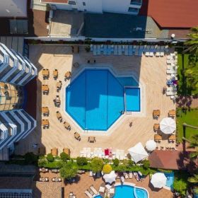 Kameralny hotel położony bezpośrednio przy słynnej plaży Kleopatra, idealny dla Gościa, który chce łączyć beztroski relaks nad morzem z bliskością centrum Alanyi. Na miejscu czeka zewnętrzny basen z wydzieloną częścią dla dzieci oraz leżakami i parasolami przy basenie, a tuż obok plaża oferuje wakacyjny klimat i bogatą ofertę sportów wodnych. Hotel serwuje śniadania i obiadokolacje w formie bufetu, a dodatkowym atutem są restauracja ? la carte oraz bar przy basenie. Gość ma do dyspozycji recepcję czynną całą dobę oraz kantor, natomiast Wi-Fi, pralnia, sejf i minibar są płatne.