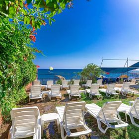 Publiczna plaża usytuowana jest zaledwie 150 m od hotelu. Goście mogą korzystać z bezpłatnych parasoli, leżaków i materacy, co oferuje idealne warunki do relaksu nad morzem.